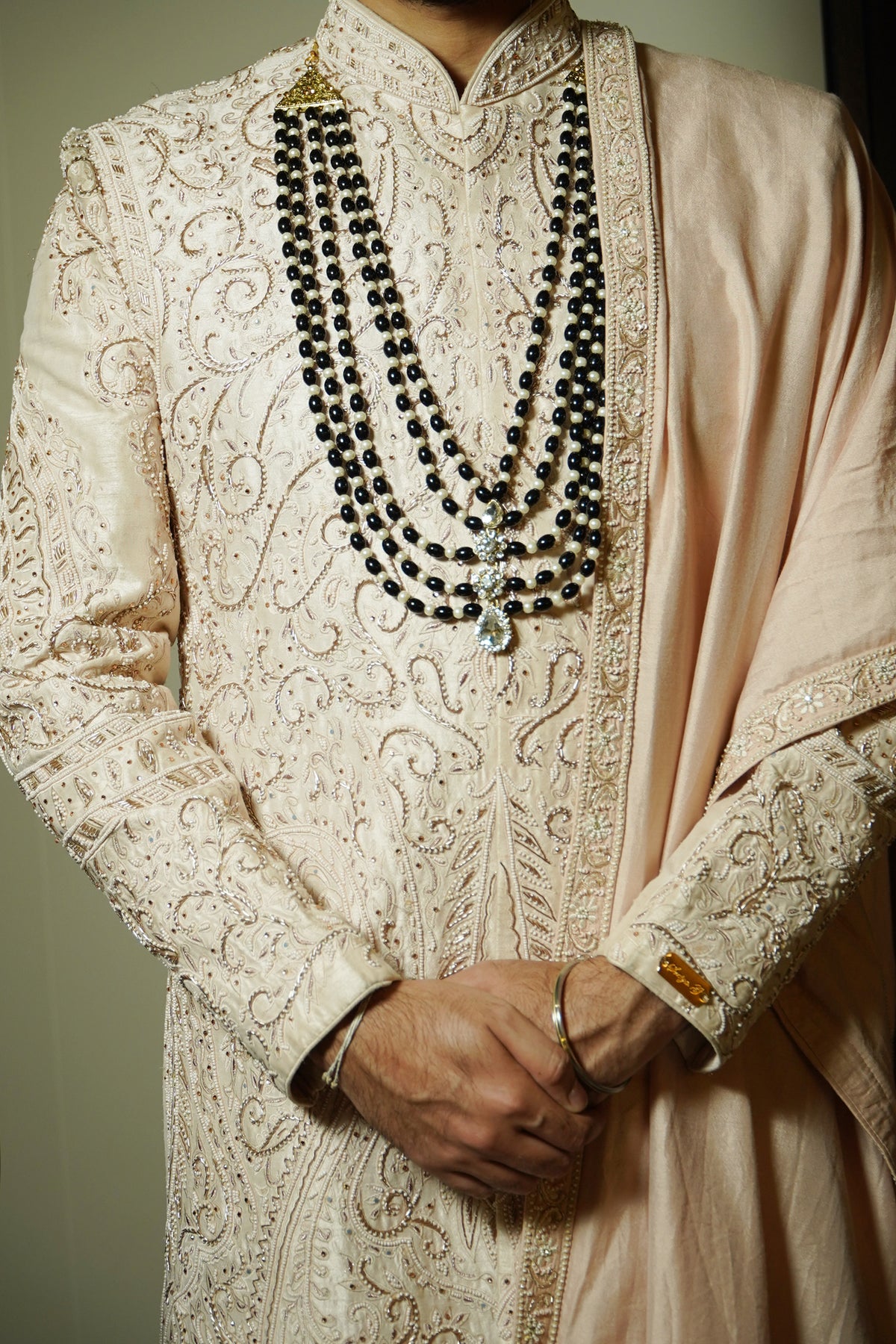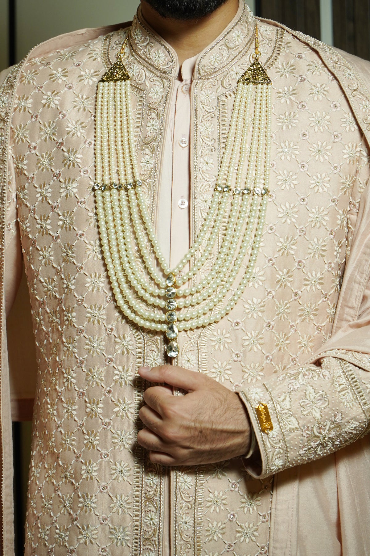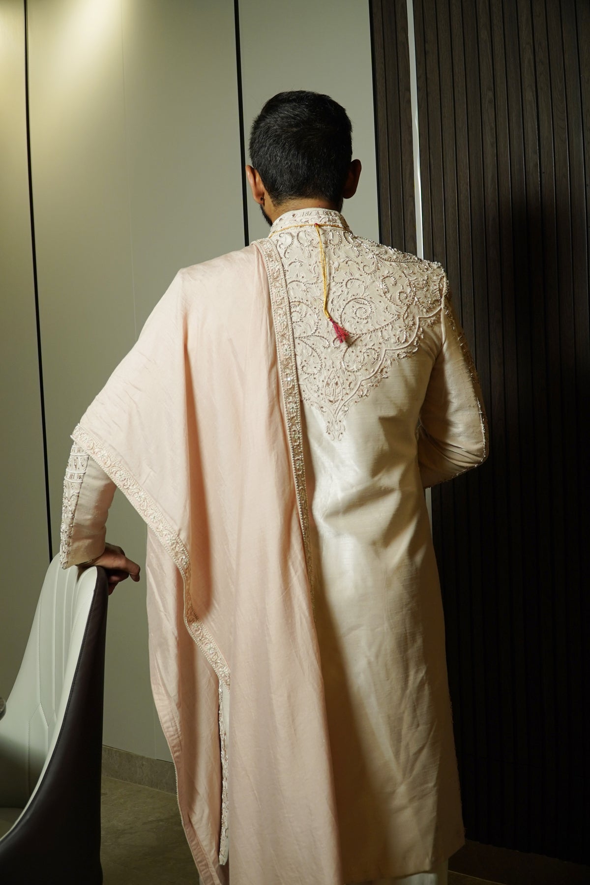 Featuring A Baby Pink Coloured Lucknowi Sherwani Paired With A Matching Stole